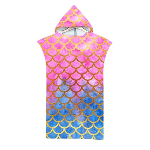 Kreeqe Luxury Holiday Cloud Soft Microfiber Hooded Bath Towel Beach Robe Cape For Adult After Swim Quick Drying(Gradient-fish-scal,M)