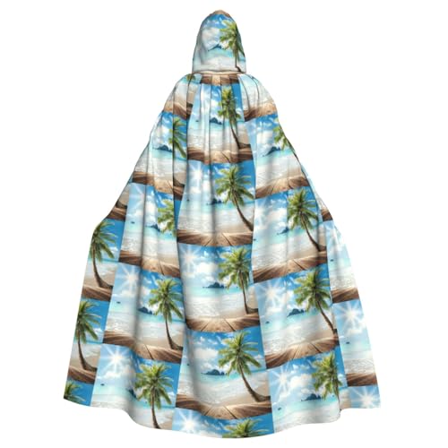 ggasdvjj Unisex Full Tropical Coconut Trees Beach Print Hooded Robe Cloak Costume,Costume Party,Halloween Cape,Themed Party Cape.