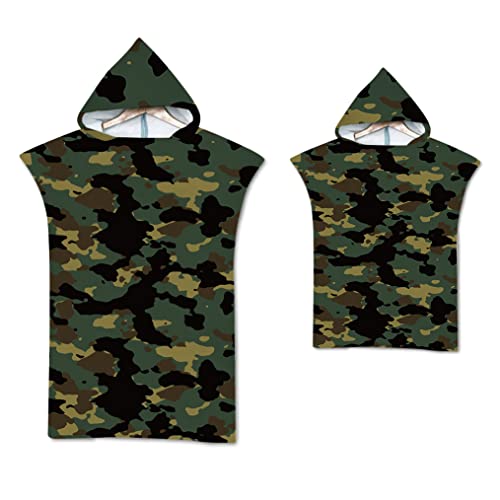 Chickwin Camouflage Changing Robe Towel for Kid Adult, Hooded Poncho Swim Beach Towel Light Weight Beach Surfing Swimming Robe (65x75cm,Green)