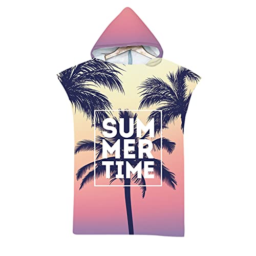 Highdi Beach Poncho Towel Adults, Summer Style Hooded Beach Towel Changing Robe/Surf Changing Towel/Microfibre Water Absorbent Swimming Towel Poncho, One Size fit Men Women (Coconut Tree)