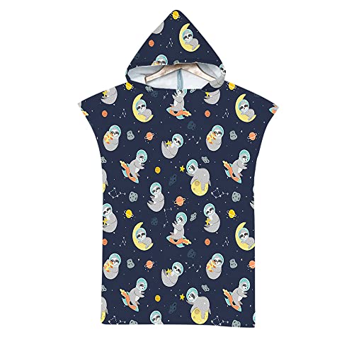 Chickwin Changing Robe Towel for Kid Adult, Sloth Printed Hooded Poncho Swim Beach Towel Light Weight Microfibre Beach Surfing Swimming Robe (70x90cm,Planet)
