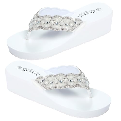 Holibanna Pearl Rhinestone Beach Shoes Women White Wedge Platform Toe Post Sandals Non-Slip Summer Casual Sandals