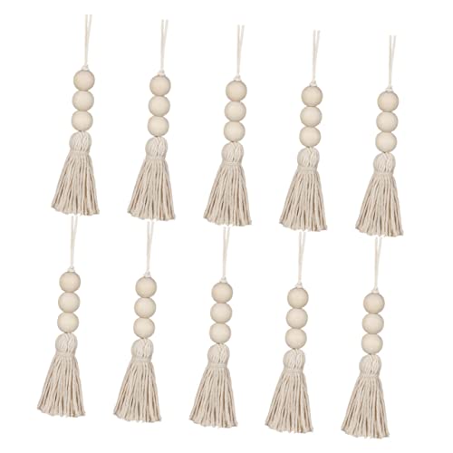 Ciieeo 10pcs Wooden Bead Door Handle Decoration Tassel Crafts Tassel Decor for Handbag Hanging Decor Curtain Ornament