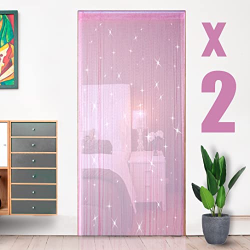 HYSENM 2 Pack Door Curtain 100 x 200cm Fly Screens for Doors, Beaded String Curtain for Doors, Door Fly Screen Curtain for Doorways - Pink