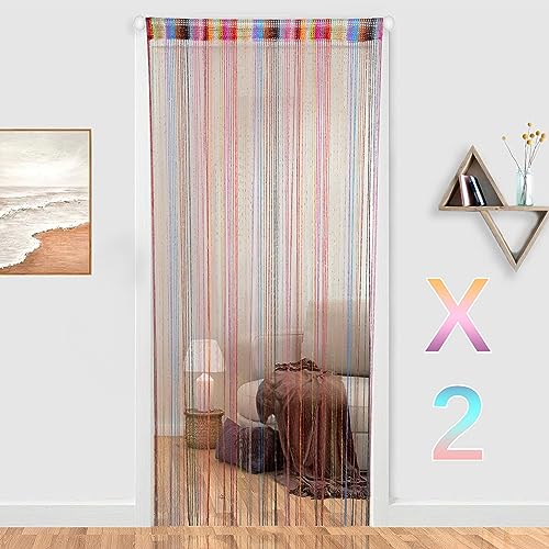 HYSENM 2 Pack Door Curtain 100 x 200cm Fly Screens for Doors, Beaded Door Curtain String Curtain for Doors, Door Fly Screen Curtain for Doorways - 6 Colors