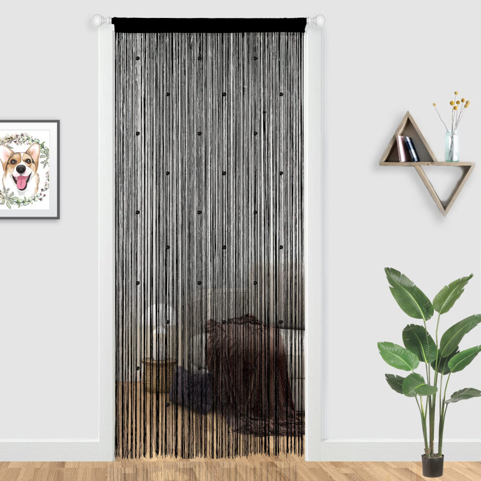 Bead String Curtains Door Fly Screen Curtain Beaded Curtain For Doorways Window Decorations Room Divider Single Door Curtain Beads (90x245cm) Black