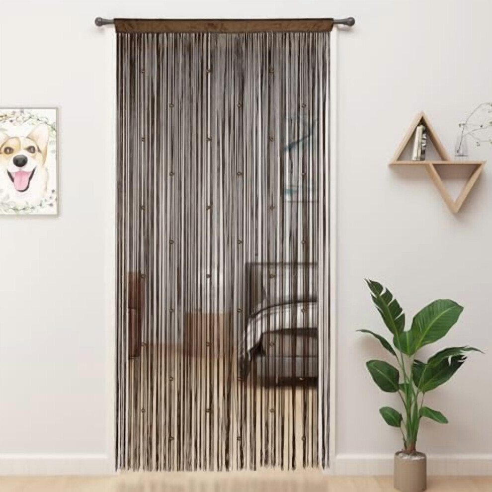 YaoYue Beaded Curtain Door String Curtains for Doorways Tassels Beads Hanging Fringe Hippie Window Hallway Entrance Wall Closet Bedroom Privacy Decor (Dark Brown, 39" W x 110" L (Pack of 1))
