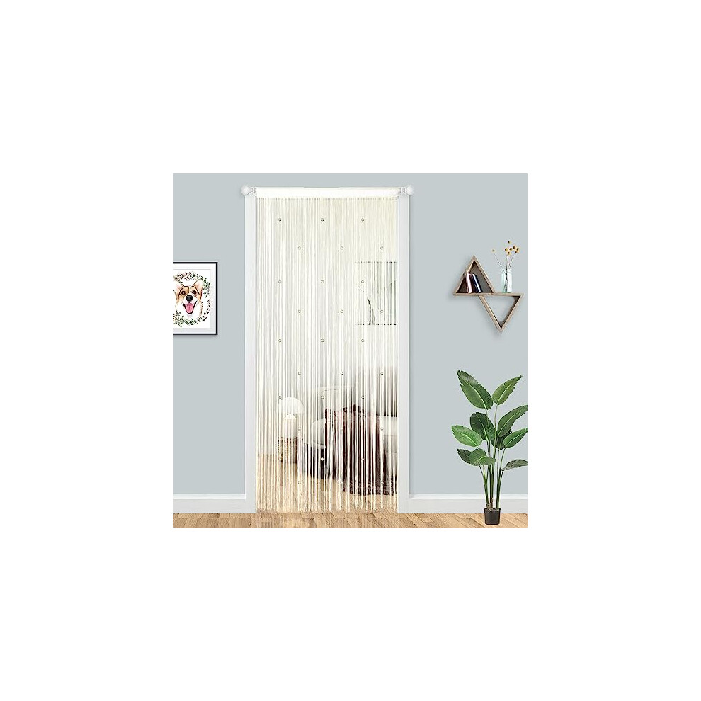 Bead String Curtains Door Fly Screen Curtain Beaded Curtain For Doorways Window Decorations Room Divider Single Door Curtain Beads (90x245cm) Ecru