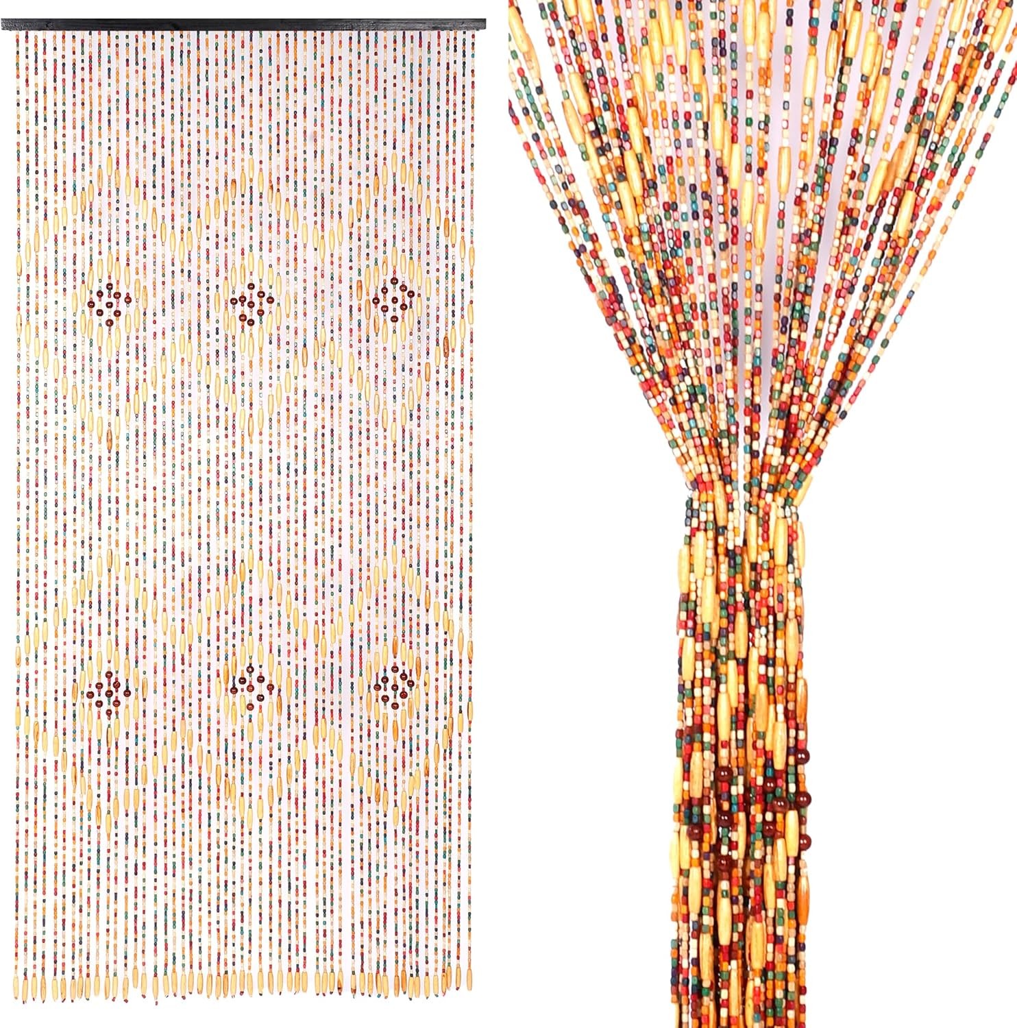 Bamboo Beaded Door Curtain,52 Strands Bead Curtains for Doorways,90x200cm Door