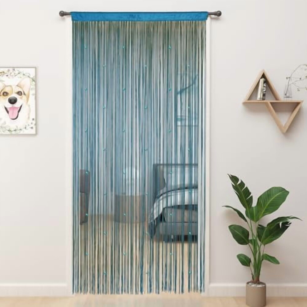Beaded Curtains For Doorways, Window Room Divider Offers Simple Hanging, Interior Decoration With Light Blue Polyester Ensures Privacy And Air Circula
