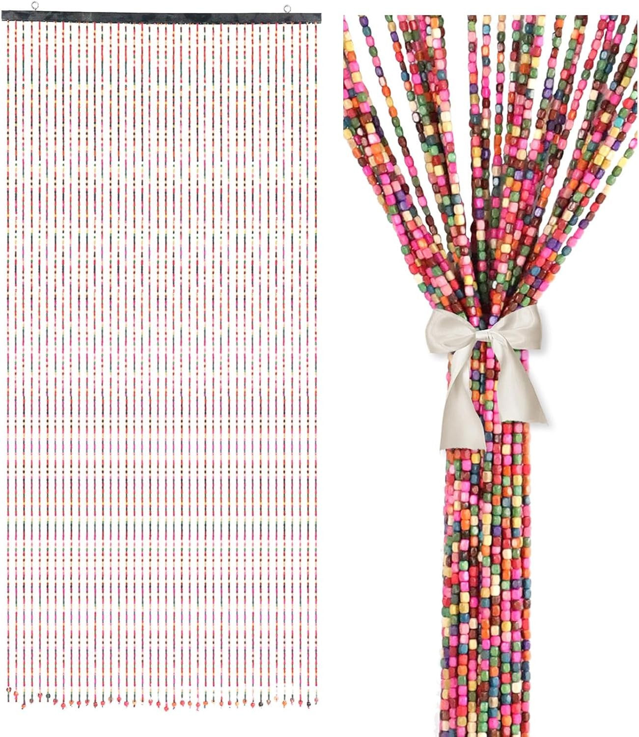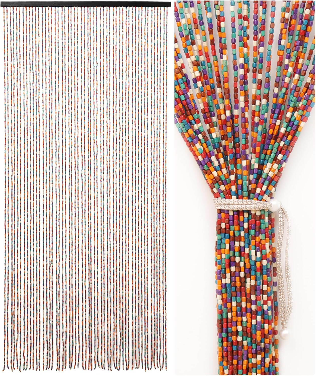 Ezcasch 90x200cm Beaded Door Curtain 38 Strands Retro Bead Curtain For Doorway As Decoration Curtain & Fly Screens For Doors/Windows/Rooms, Colorful
