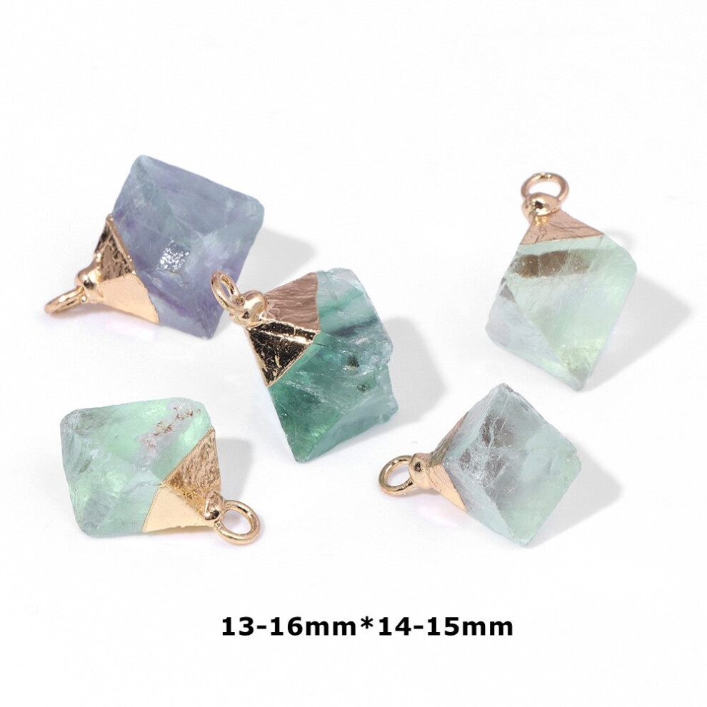 (1 Fluorite White-2 Pieces 5mm) Natural Rhombic Beads Pendant Amethysts Crystals Quartz Pendants Reiki Healing Stone Pendant for Jewelry Making DIY Ac