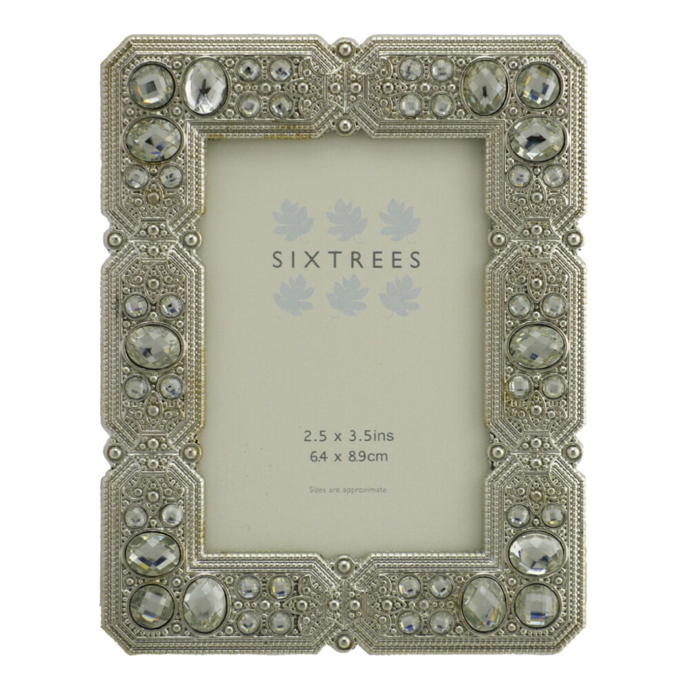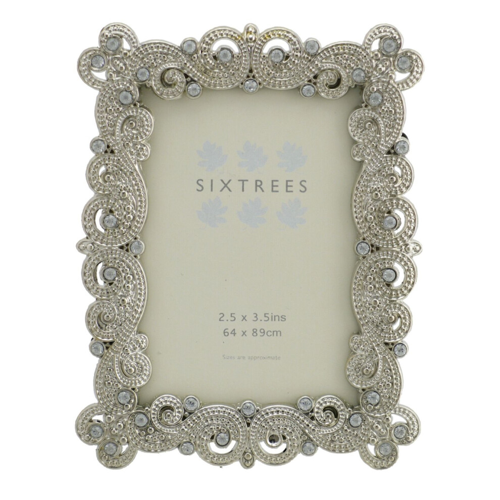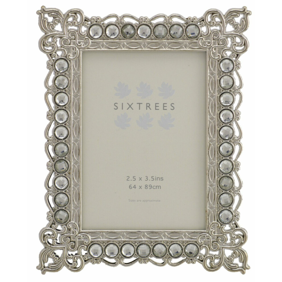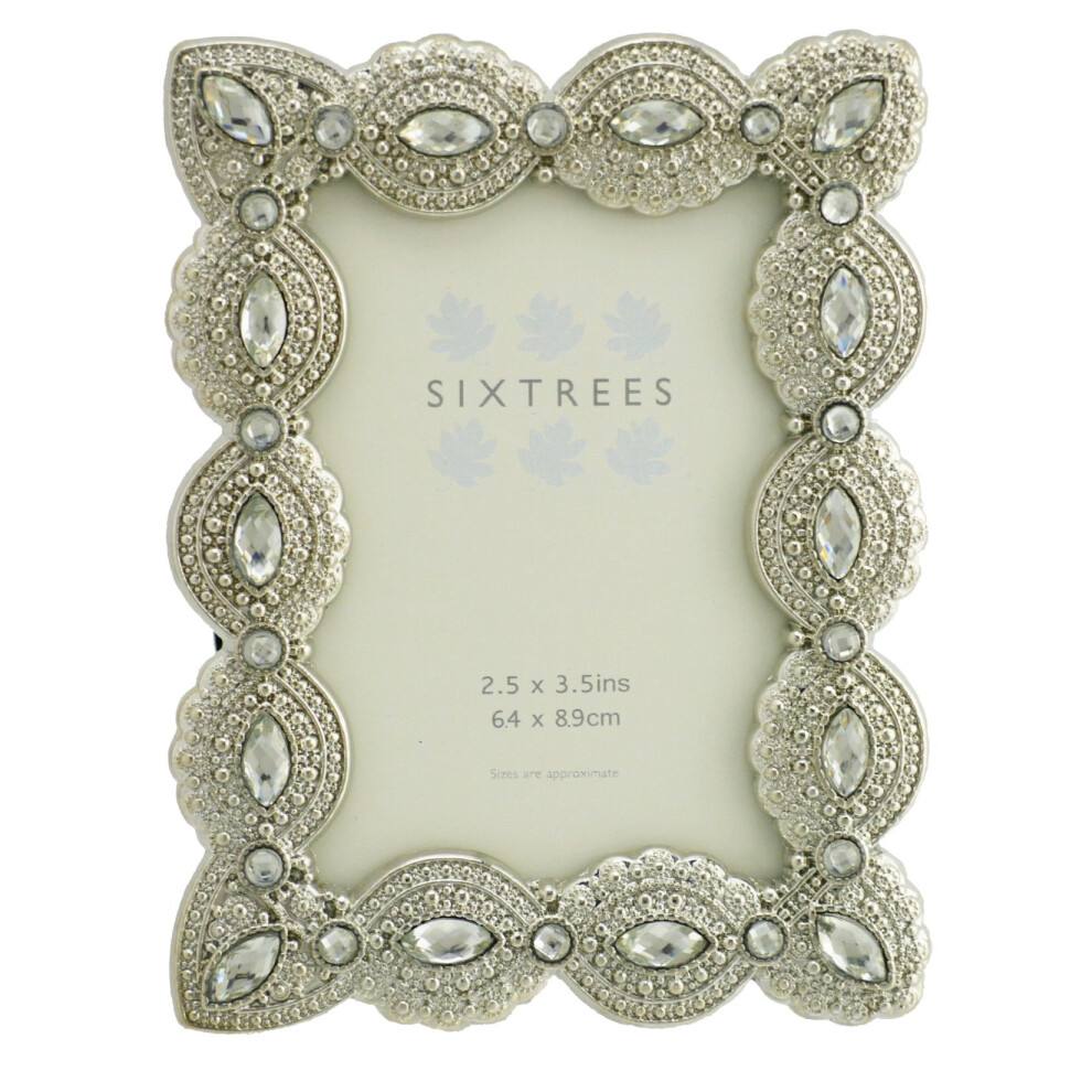 Sixtrees Matilda Antique Vintage Shabby Chic silver metal 3.5 x 2.5 inch photo frame with beads and crystals