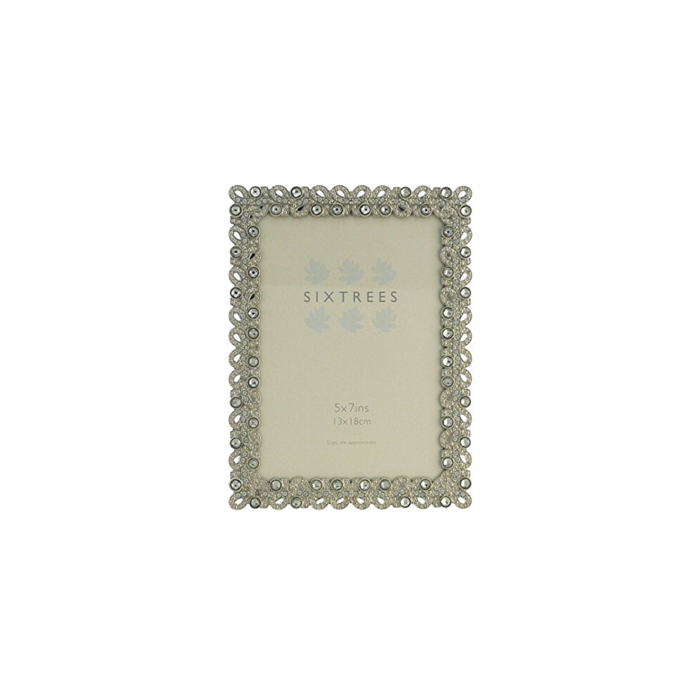 Sixtrees Cecilia 2-511-23 Antique Vintage and Shabby Chic Style silver metal 3.5 x 2.5 inch photo frame with beads and crystals