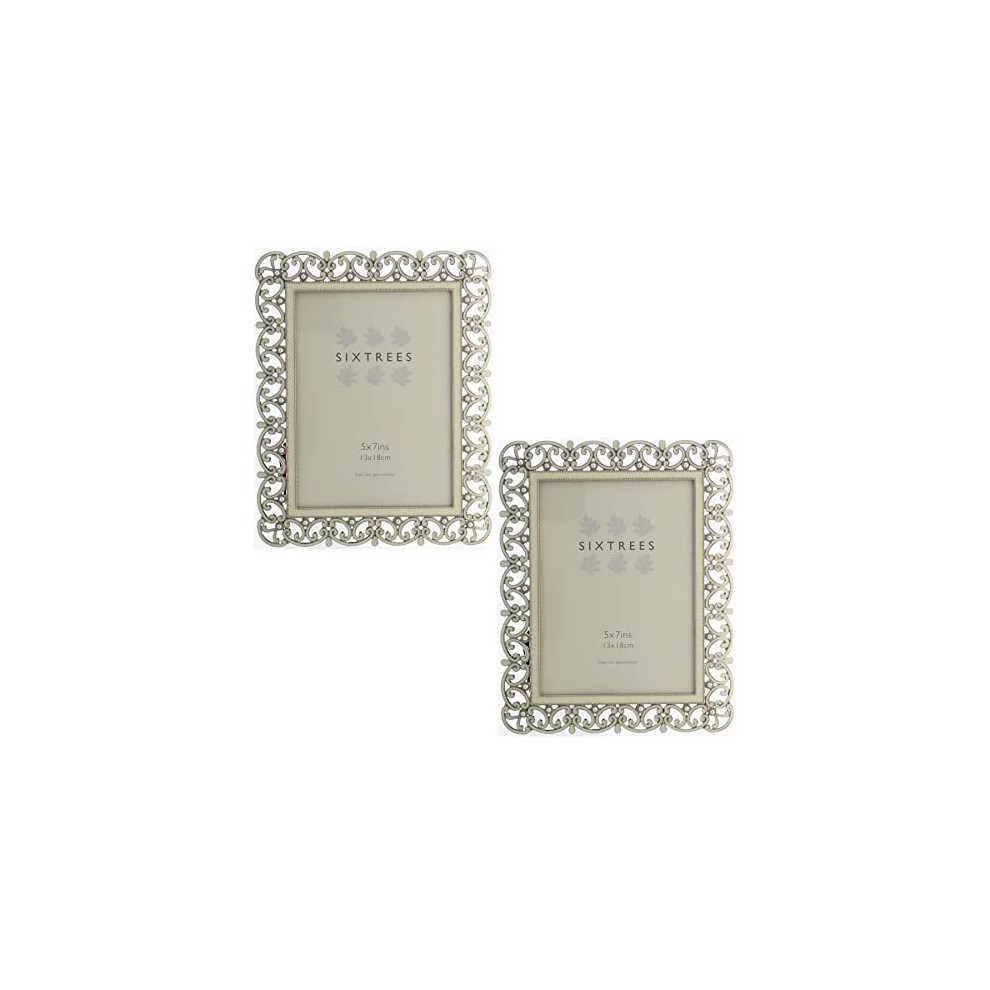A TWINPACK of Sixtrees Sophia 7x5 inch Antique Vintage and Shabby Chic Style silver metal photo frames with beads and crystals.