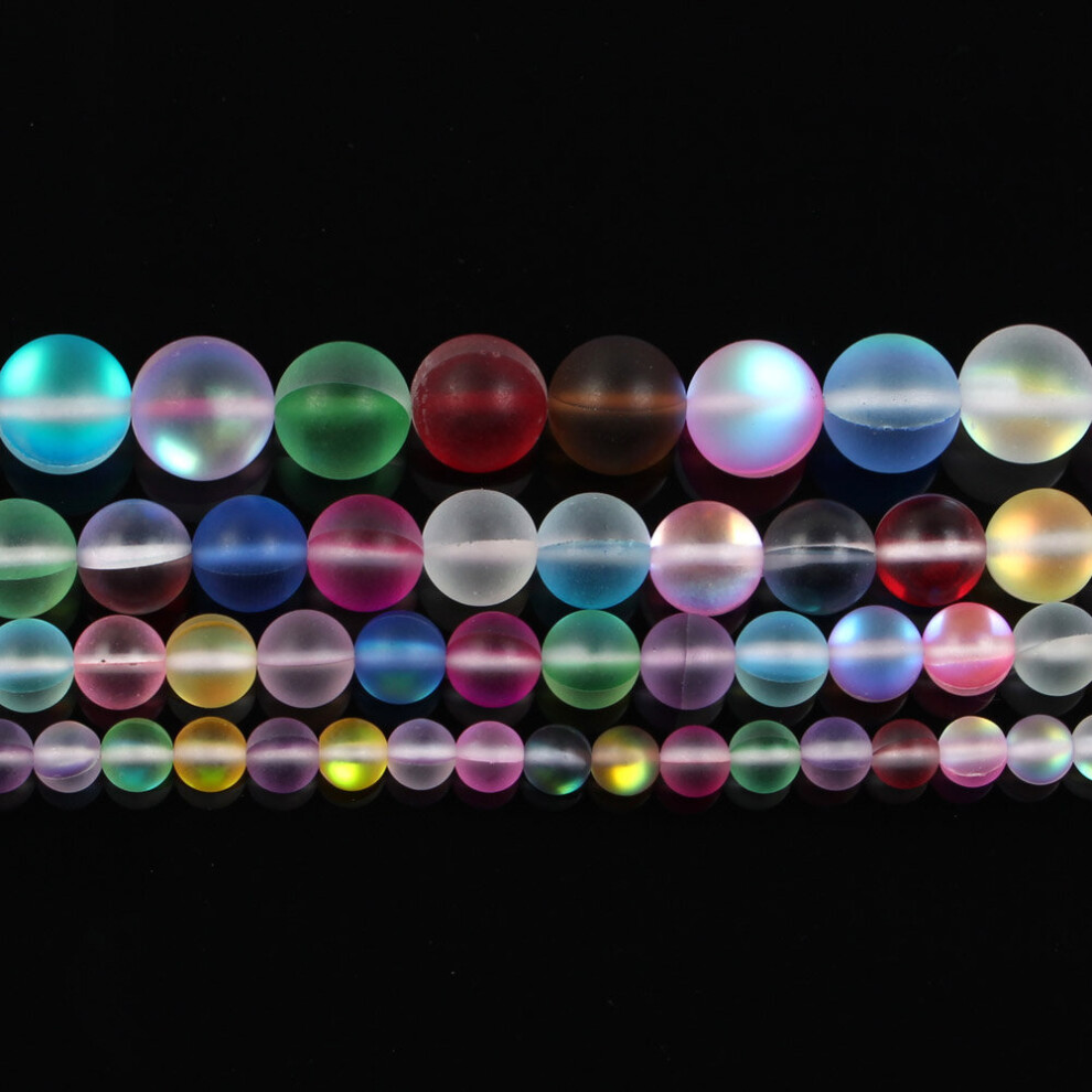 (Multicolor crystals White-10mm approx 38 beads 4mm) Natural Stone Matte Colored Snow Cracked Glass Beads Multicolor Bulk Cracked Crystals Bead For Je