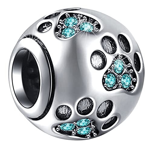 December Birthstone Pet Cat Pawprint Charms fit Pandora Christmas Bracelet, 925 Sterling Silver Dog Paw Print Footprint Beads with Birth Stone Crystals, Birthday Gift for Sister/Daughter