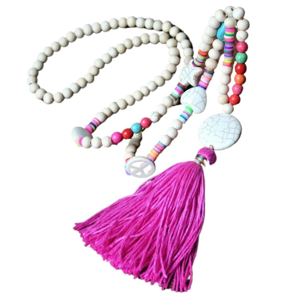 Handmade sweater chain with beads and crystals and peace pendant Long tassel, women's clothing accessory N2354