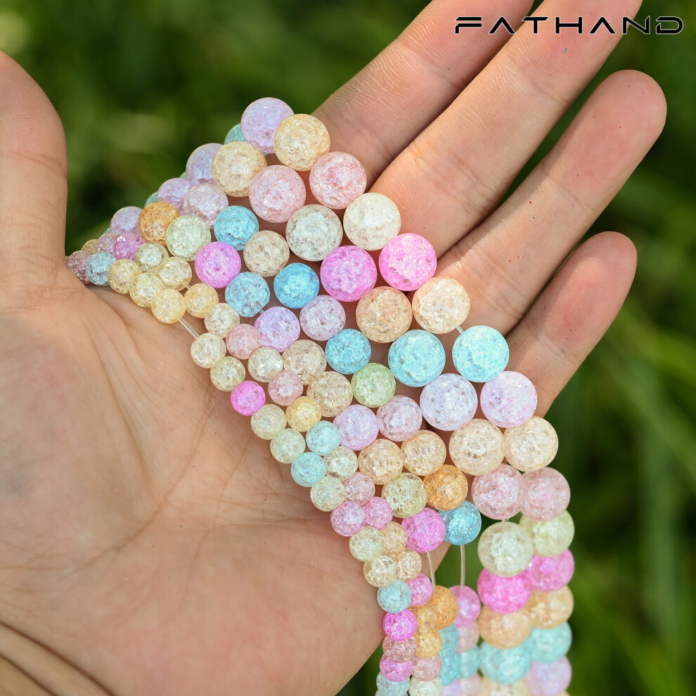 (Multicolor crystals White-8mm approx 50 beads 3mm) Natural Stone Matte Colored Snow Cracked Glass Beads Multicolor Bulk Cracked Crystals Bead For Jew