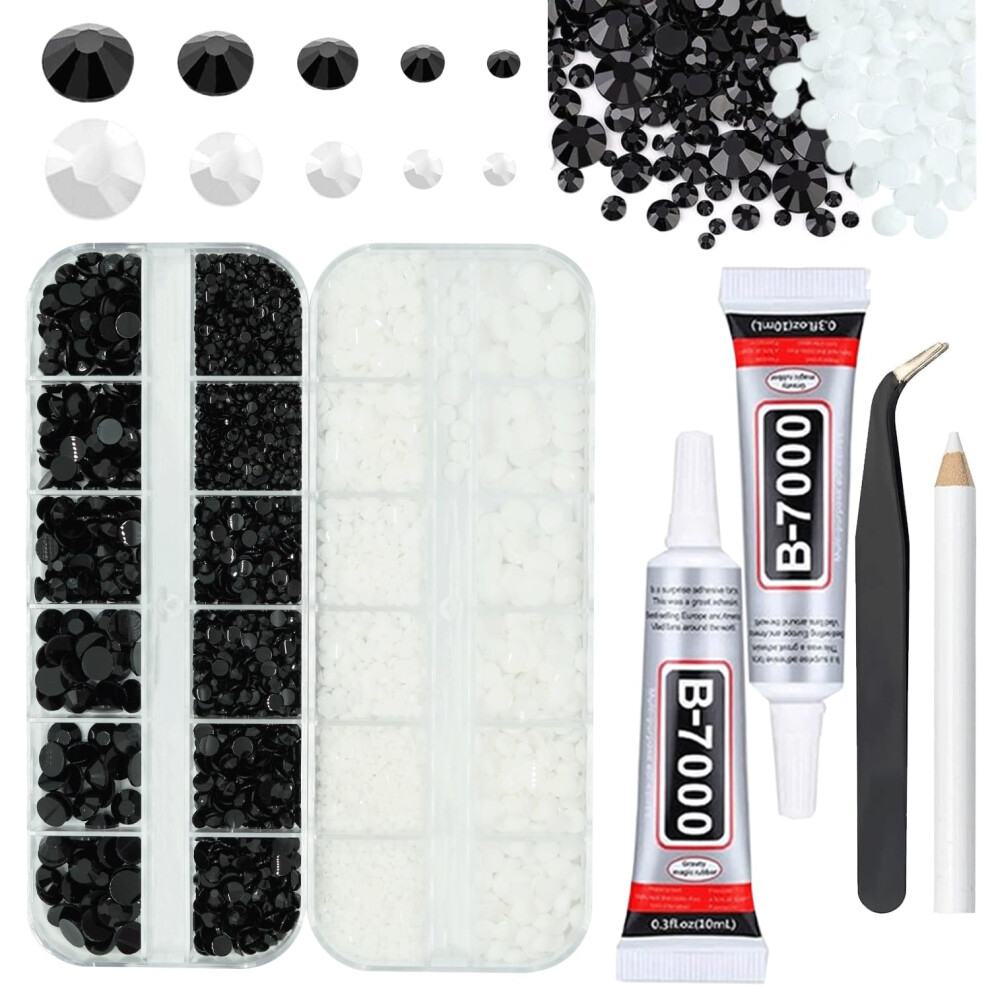 Black and White Rhinestones for Bedazzling with B7000 Glue 2mm 3mm 4mm 5mm 6mm (SS8-SS30) Non-Hotfix Flatback Nail Gems Beads Nail Crystals Diamond