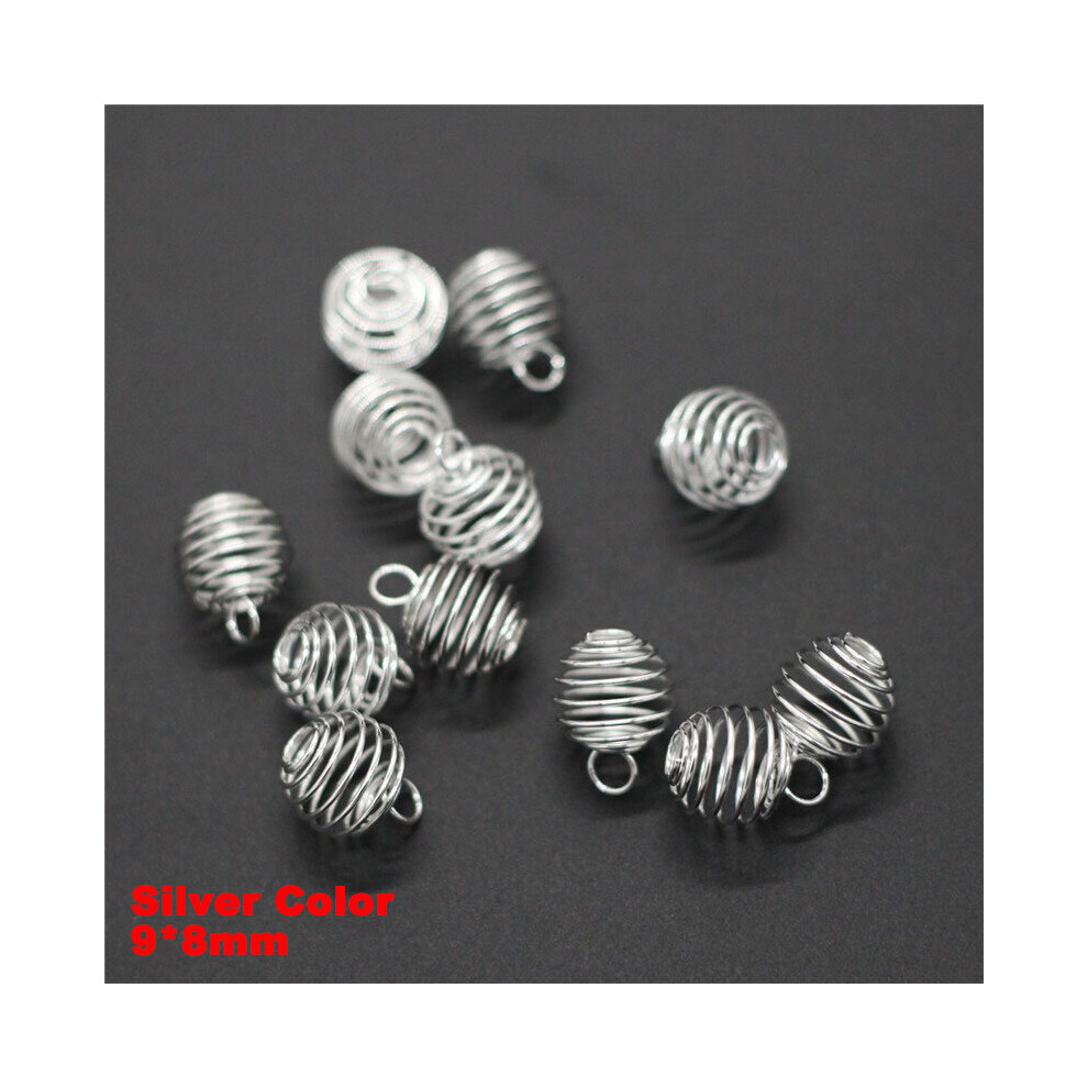 20pcs Small Silver Wire Wrap Cage Pendants Beads for DIY Crystals Stones Jewelry Making Craft Supply