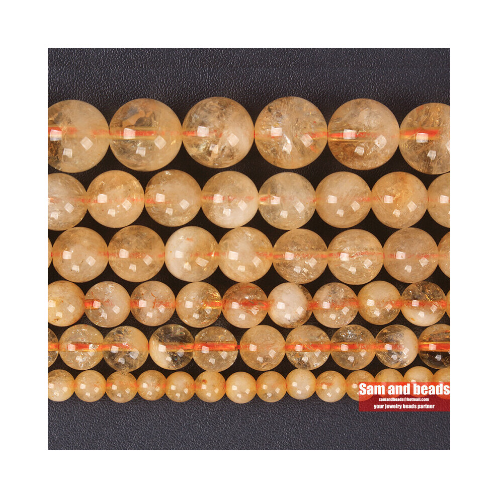 Natural Citrines Round Stone Loose Beads Yellow Quartz Crystals For Jewelry Making DIY Bracelet Necklace