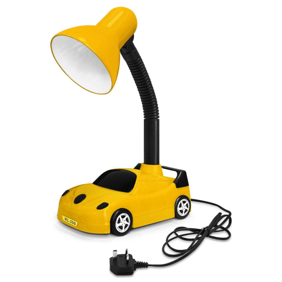 Racing Car Desk Lamp Flexible Yellow and Black with LED Golf Ball Bulb 4w