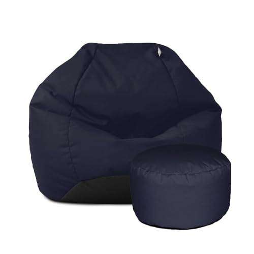 rucomfy Beanbags Big Kids Snuggle Chair - Large Corduroy Armchair for Kids & Teenagers - Home Furniture Living Room or Bedroom Seating - Machine Washable - 70 x 80 x 60cm (Navy, with Footstool)