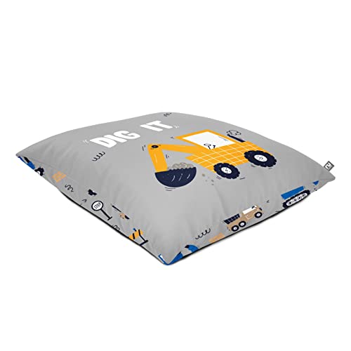 rucomfy Beanbags Printed Kids Large Square Floor Cushion Bean Bag. Perfect for Chidrens Bedroom or Play-room. Giant Plush Pillow for Child with Filling. Machine Washable - 70 x 70cm (Dig It Grey)