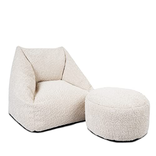 rucomfy Beanbags Kids Boucle Bean Bag Chair with Filling - Childrens Neutral Colour Beanbag Seat Bedroom Furniture - Toddler Armchair Seat with Footstool for Boys & Girls - 50 x 46 x 48cm (Oat)