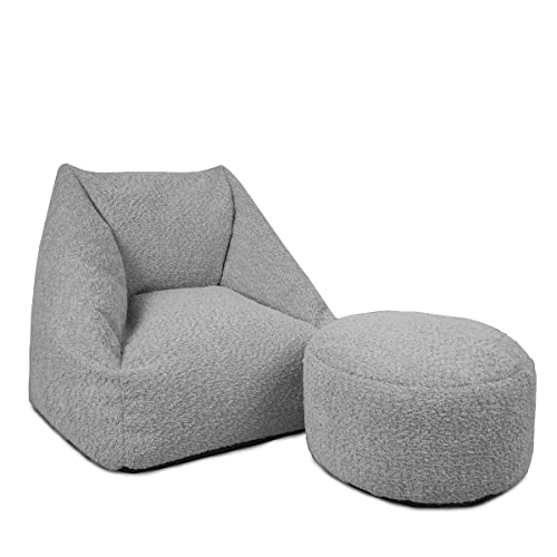 rucomfy Beanbags Kids Boucle Bean Bag Chair with Filling - Childrens Neutral Colour Beanbag Seat Bedroom Furniture - Toddler Armchair Seat with Footstool for Boys & Girls - 50 x 46 x 48cm (Grey)