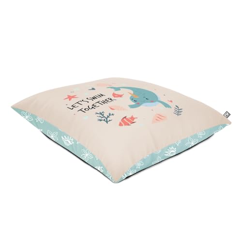 rucomfy Beanbags Printed Kids Large Square Floor Cushion Bean Bag. Perfect for Chidrens Bedroom or Play-room. Giant Plush Pillow for Child with Filling. Machine Washable - 70 x 70cm (Under The Sea)