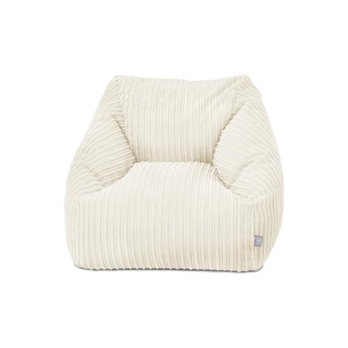 rucomfy Beanbags Big Kids Snuggle Chair - Large Corduroy Armchair for Kids & Teenagers - Home Furniture Living Room or Bedroom Seating - Machine Washable - 70 x 80 x 60cm (Ivory, Beanbag Only)