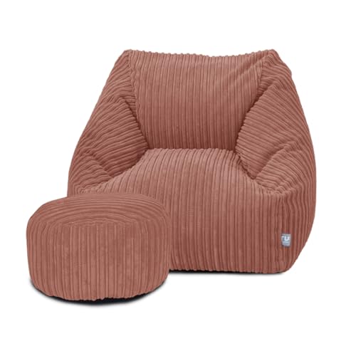 rucomfy Beanbags Big Kids Snuggle Chair - Large Corduroy Armchair for Kids & Teenagers - Home Furniture Living Room or Bedroom Seating - Machine Washable - 70 x 80 x 60cm (Blush Pink, with Footstool)
