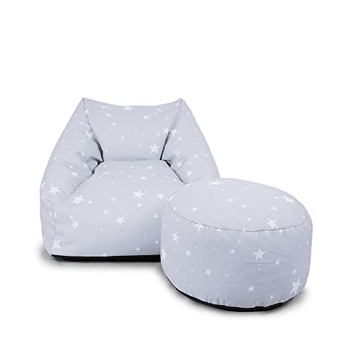 rucomfy Beanbags Snuggle Kids Bean Bag Chair - Small Armchair Beanbag Seat - Childrens Bedroom Furniture for Boys and Girls - Arrives Filled - 50 x 46 x 48cm (Twinkle Star, with Matching Footstool)