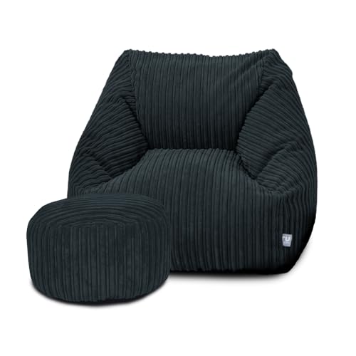 rucomfy Beanbags Big Kids Snuggle Chair - Large Corduroy Armchair for Kids & Teenagers - Home Furniture Living Room or Bedroom Seating - Machine Washable - 70 x 80 x 60cm (Slate Grey, with Footstool)