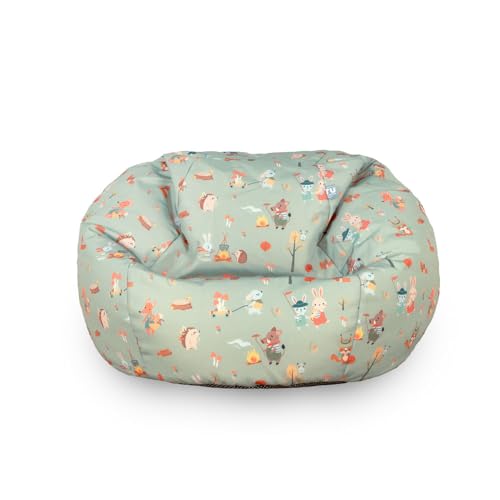 rucomfy Beanbags Slouchbag Kids Bean Bag Chair, Water Resistant Fabric, Pre-Filled Triple Stitched Seat for Outdoor or Indoor Use, Cosy Supportive Beanbag - Forest Friends