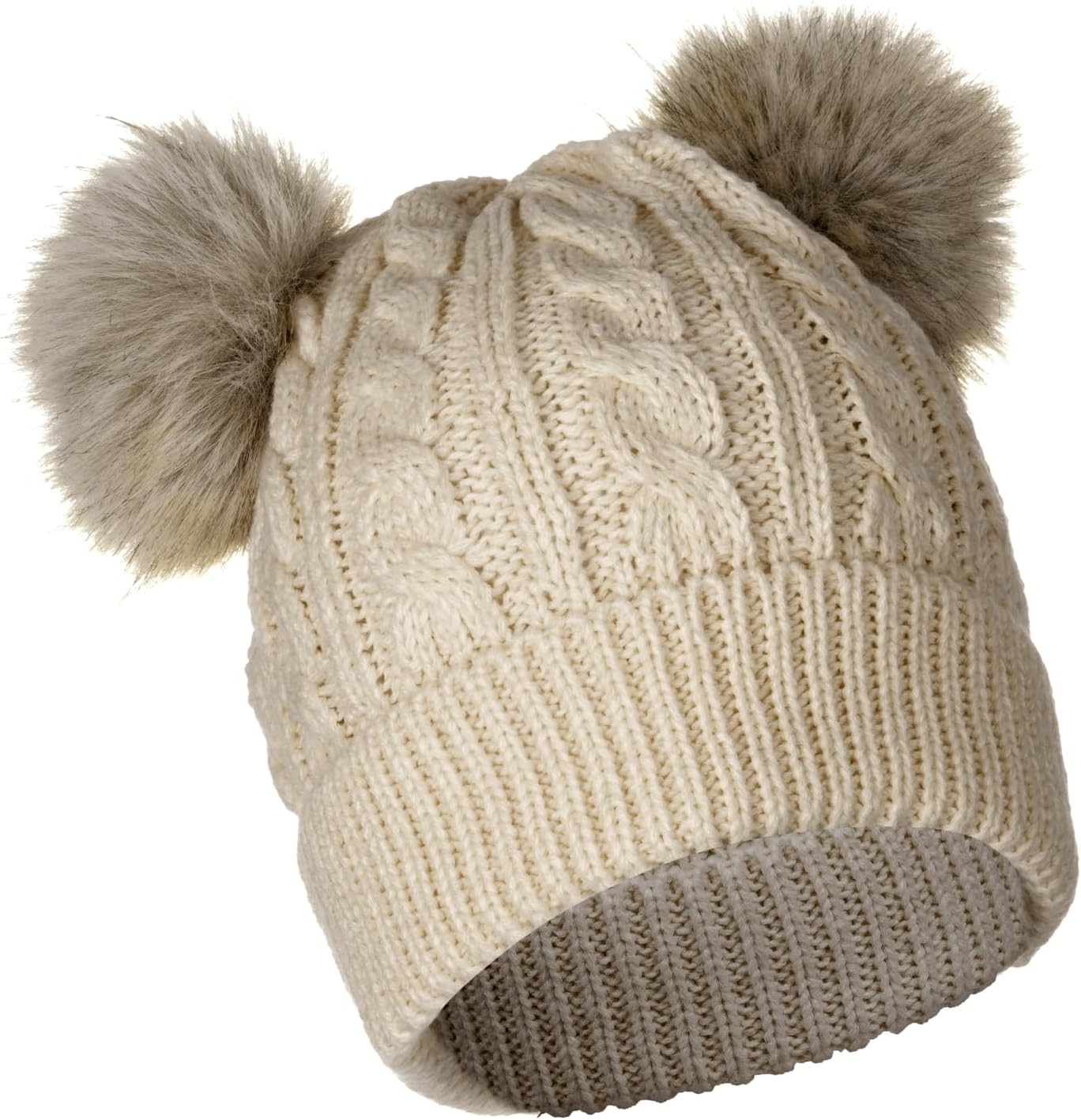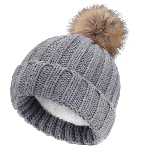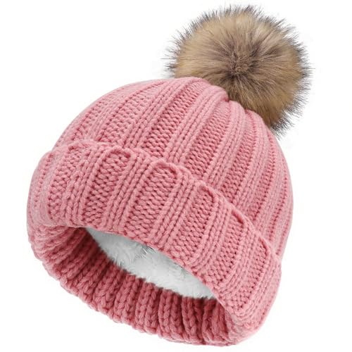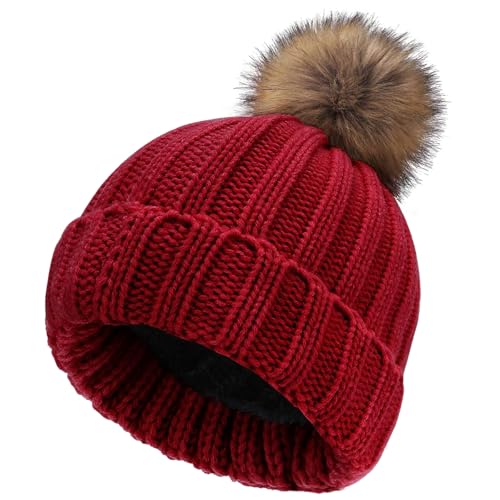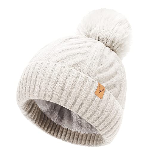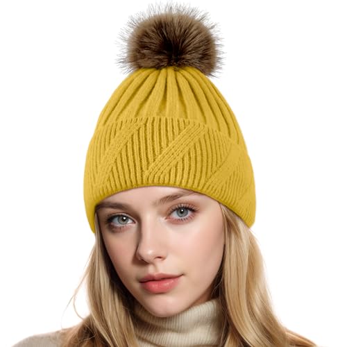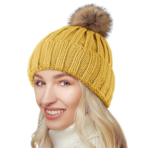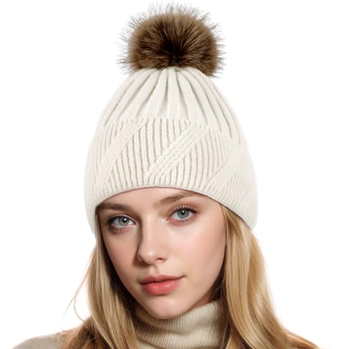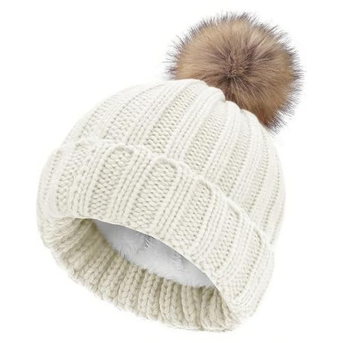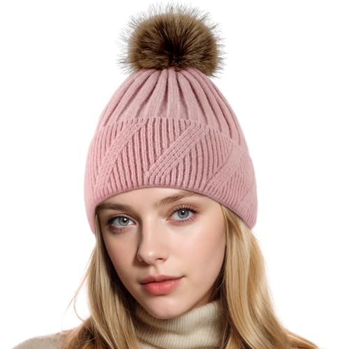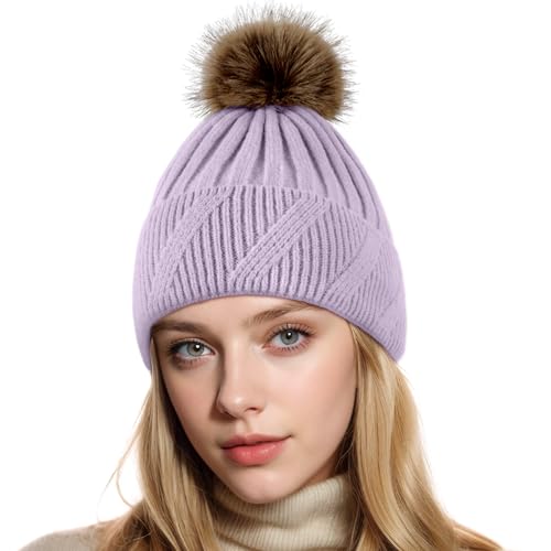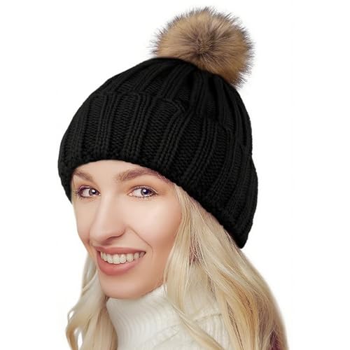 NEOLA Winter Hats for Women - Fleece Lined Beanie Hat Ladies Soft Warm Knit Bobble Hat with Detachable Chunky Faux Fur Pom Pom for Outdoor Sports Ski UK
