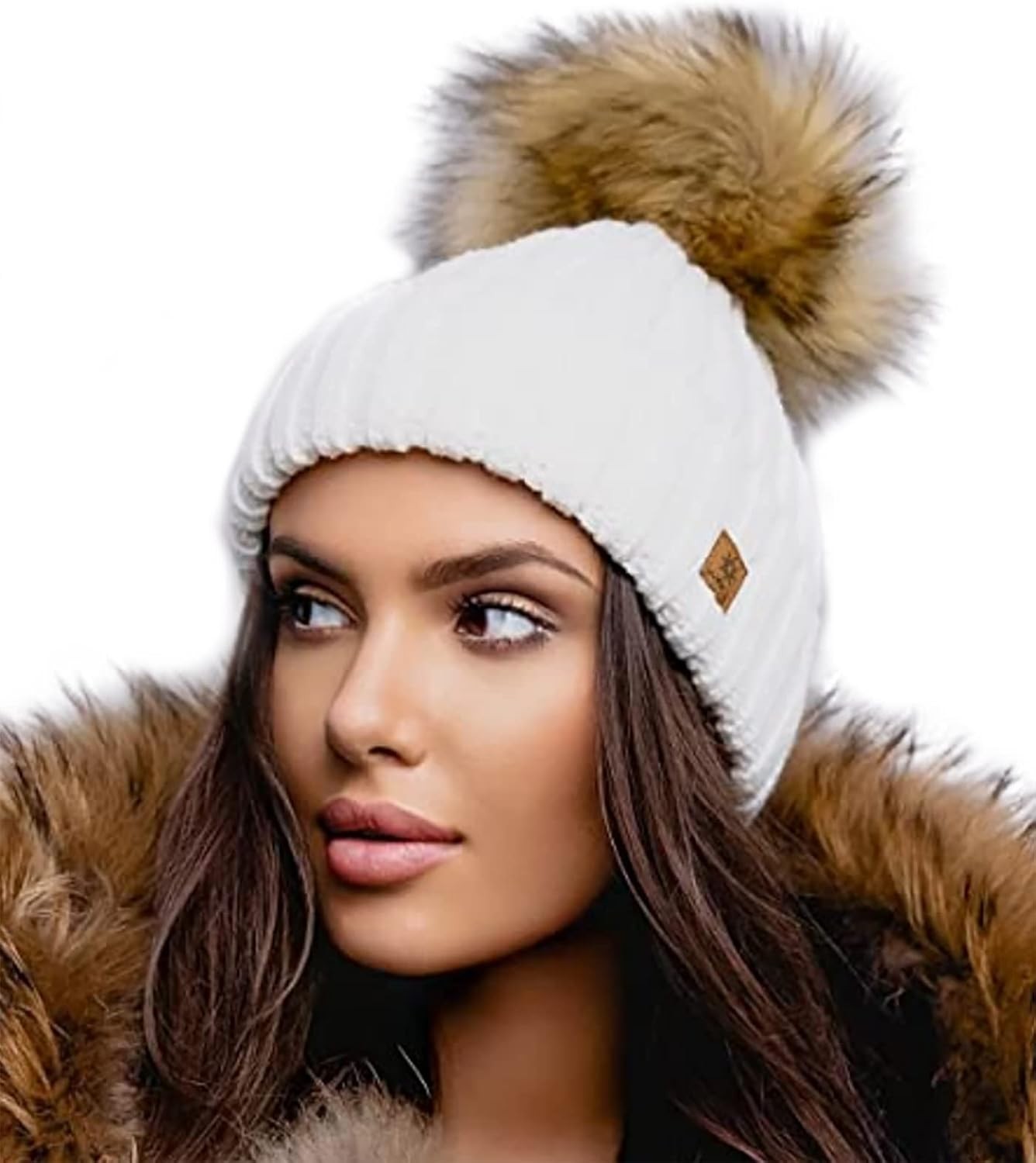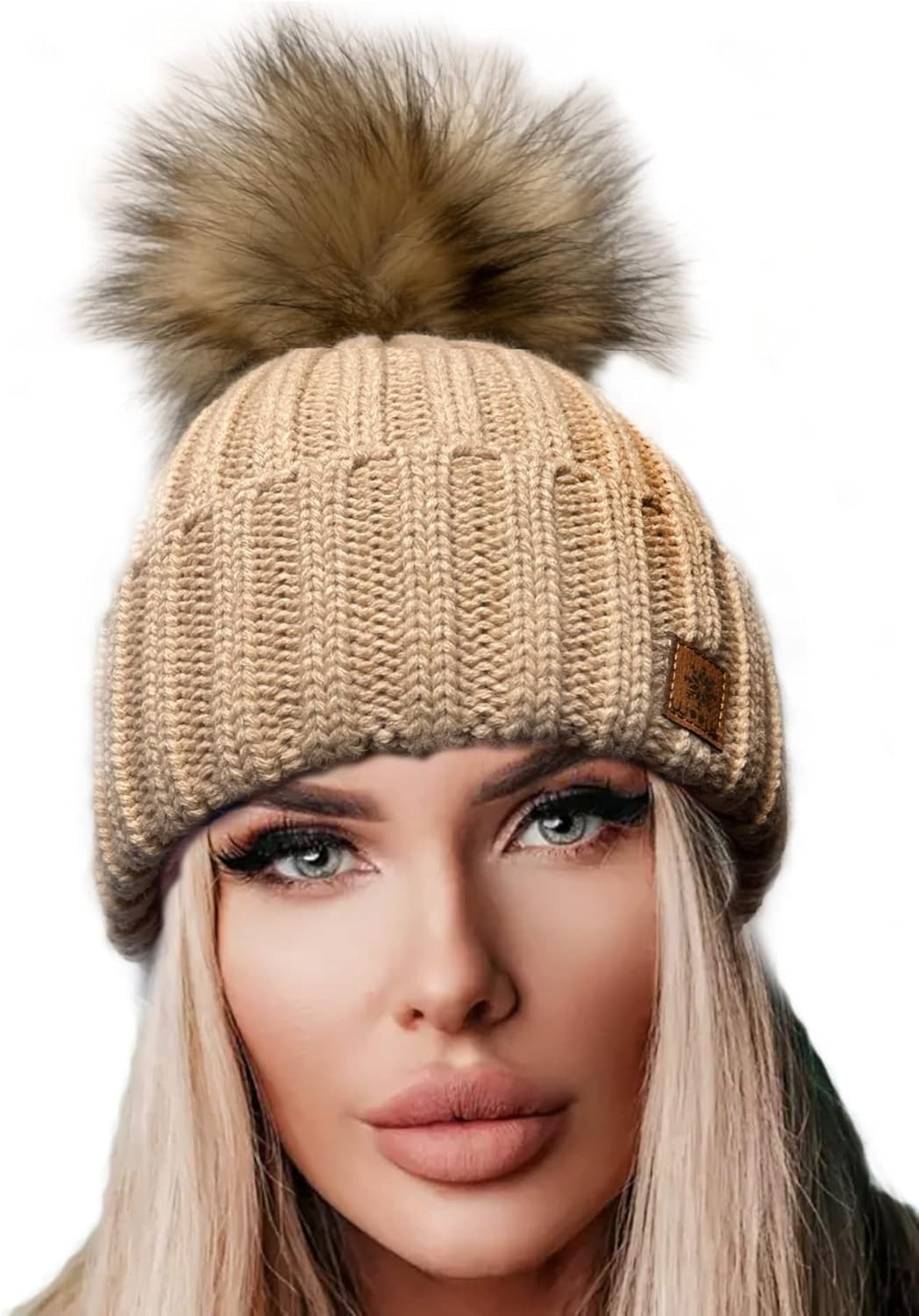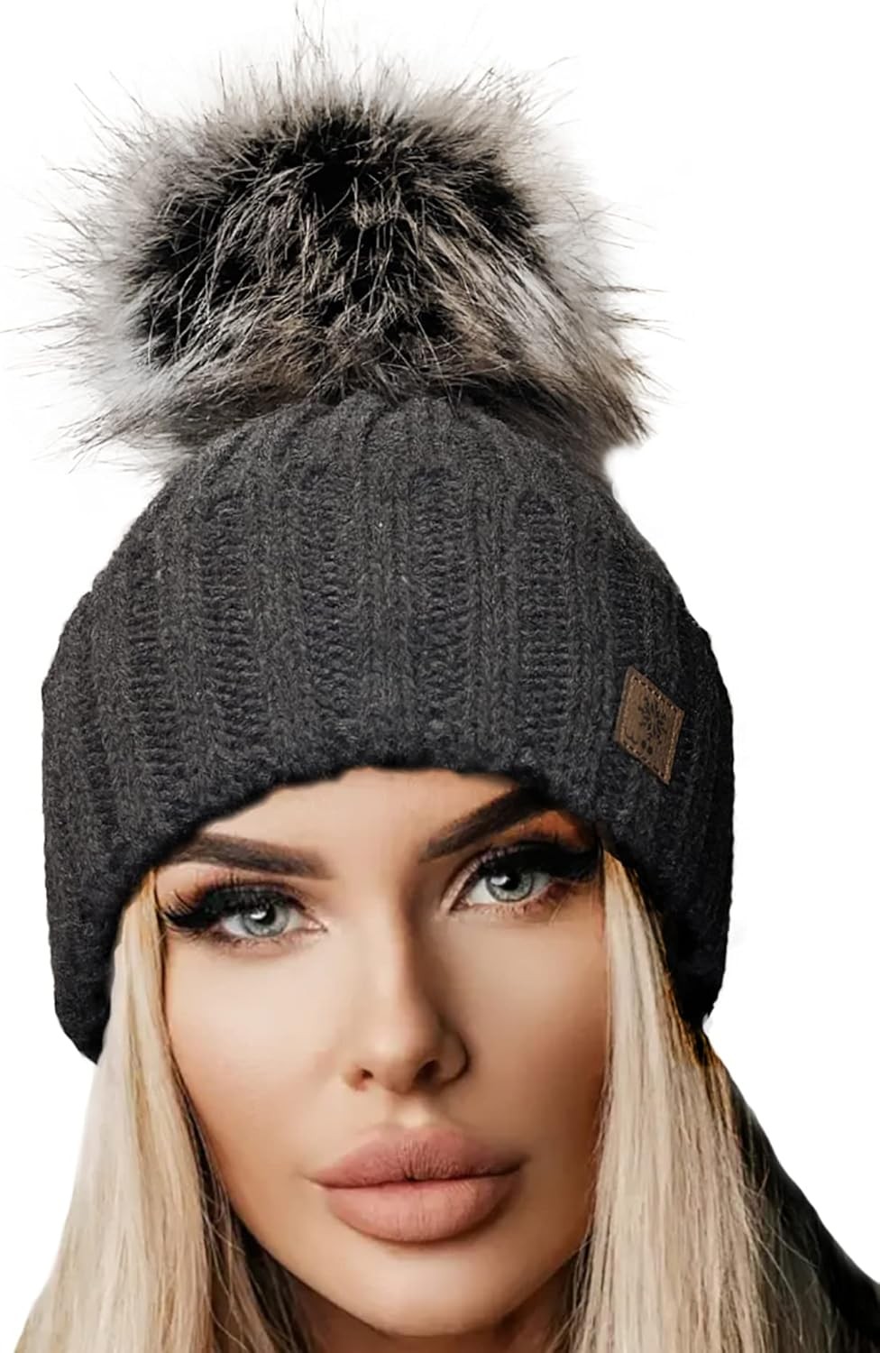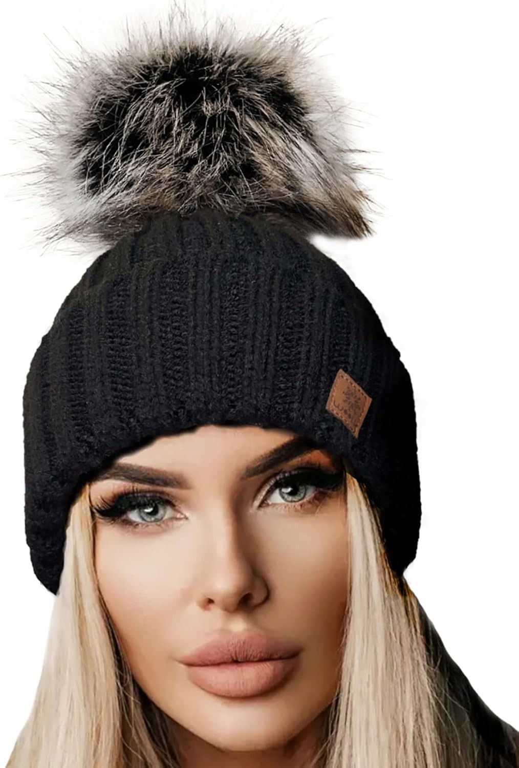 NEOLA Winter Hats for Women - Fleece Lined Beanie Hat Ladies Soft Warm Knit Bobble Hat with Detachable Chunky Faux Fur Pom Pom for Outdoor Sports Ski UK