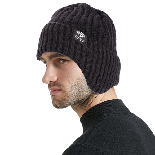 Mens Beanie Hats Uk, Winter Knit Beanie Hat Winter Thermal Beanie Soft Fleece Lining Knitted Cuffed Wooly Hat Beanie Hats for Men Uk Knit Cuffed Beanie for Men and Women Winter Hats for Women and Men