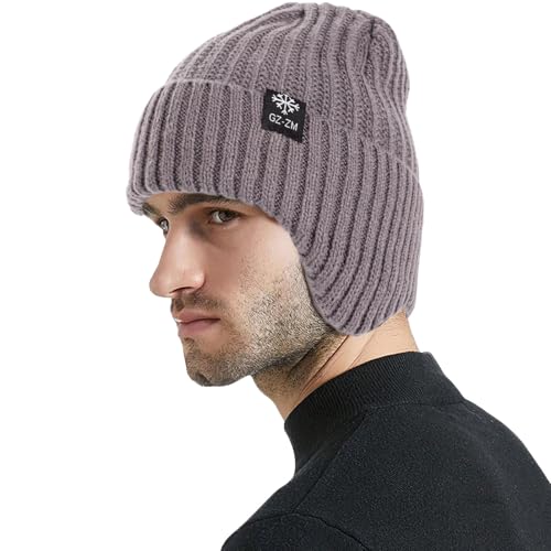 Risipu Knit Beanie Hat Outdoor Warm Thermal Hats Unisex Windproof Earflap Soft Knit Winter Hat for Cycling Running Fishing Skiing Sports (UK, Alpha, One Size, Gray)
