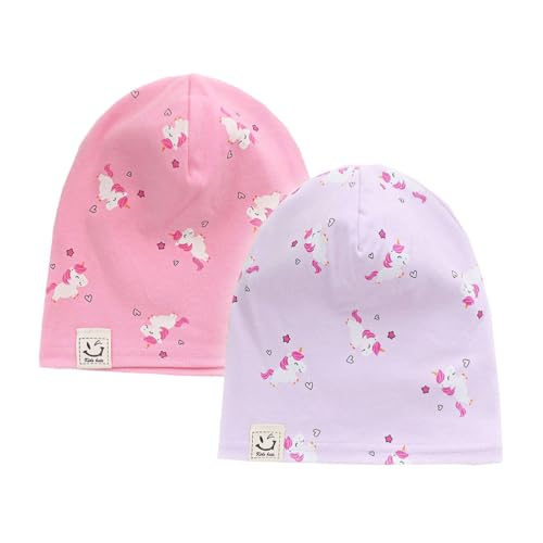 FUYAO Baby Beanie Hat 2 Pack Toddler Kids Soft Cotton Skull Cap Little Boys Girls Warm Hats for Spring Autumn (UK, Age, 1 Year, 6 Years, Unicorn Pink + Unicorn Purple)