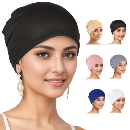 6 Pcs Chemo Hats for Women UK, Breathable Cancer Headwear Elastic Chemo Hats for Hair Loss, Solid Beanie Skull Cap for Sleeping, Winter & Summer