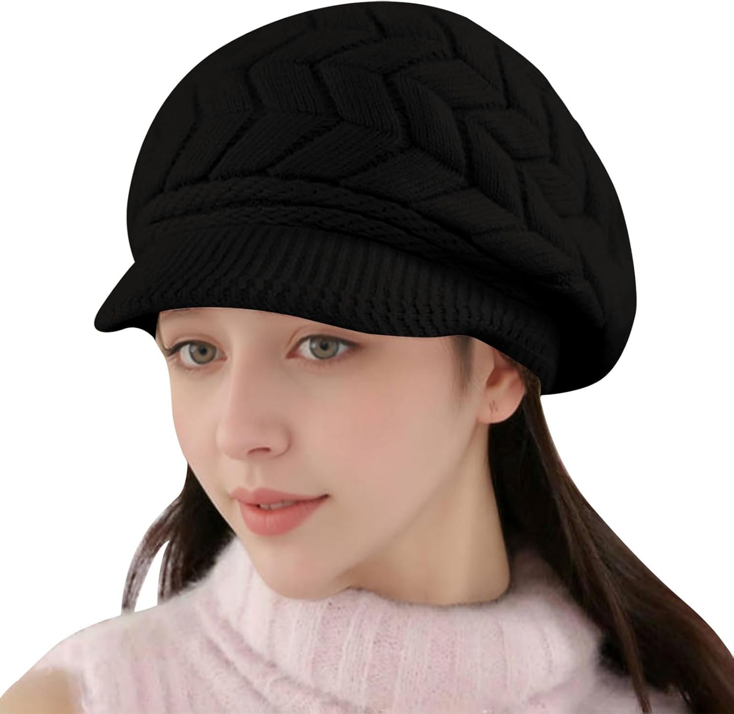 Beanie Hats for Women with Vior - Thermal Knitted Winter Hat Fleece Lined Ladies Beret Hat Warm Knitted Wool Hat Crochet UK (UK, Alpha, One Size, Black)