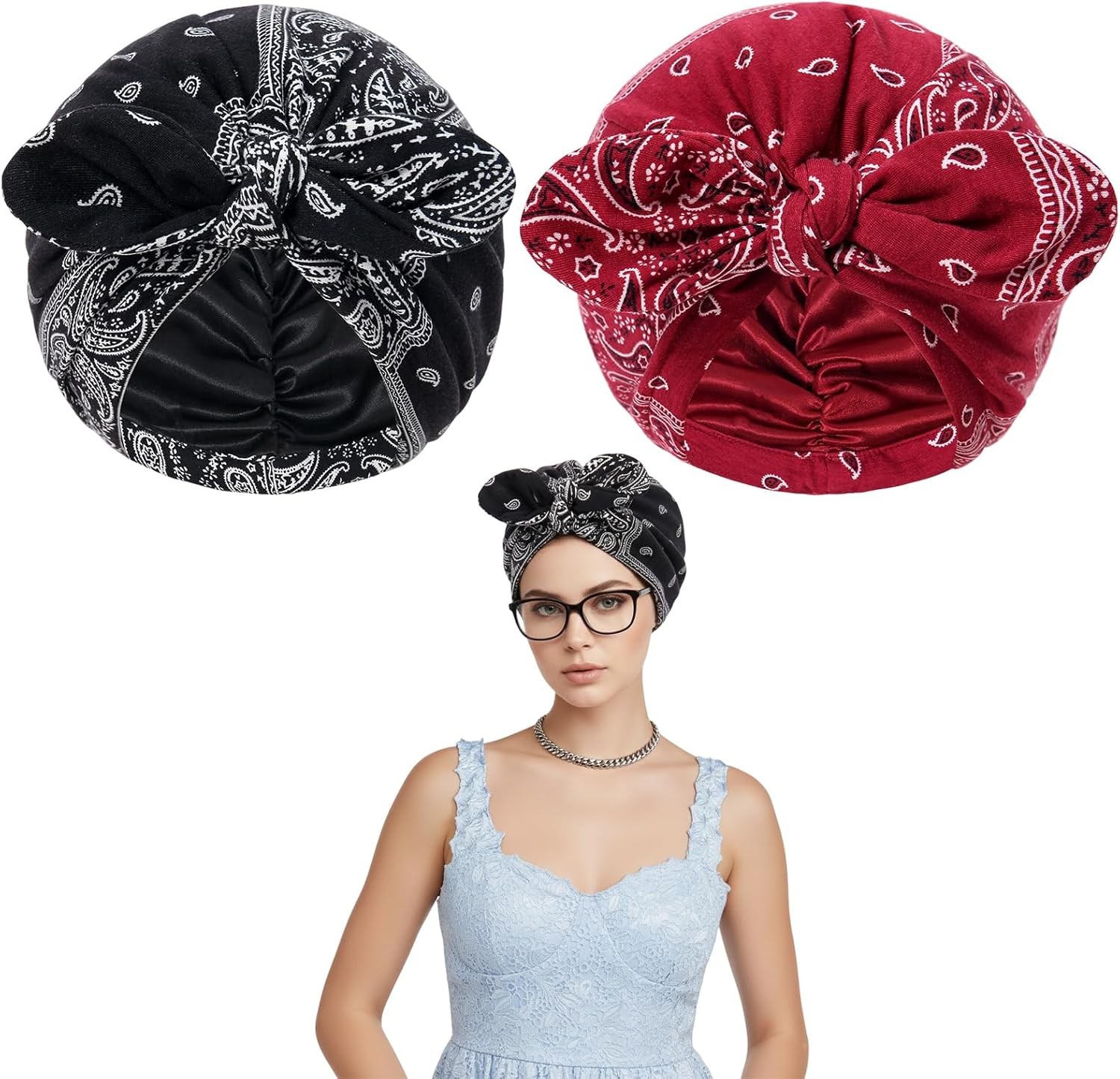 2 Pack Bow Hats, Chemo Headwear for Women UK, Satin Lined Beanie, Head Wraps fo