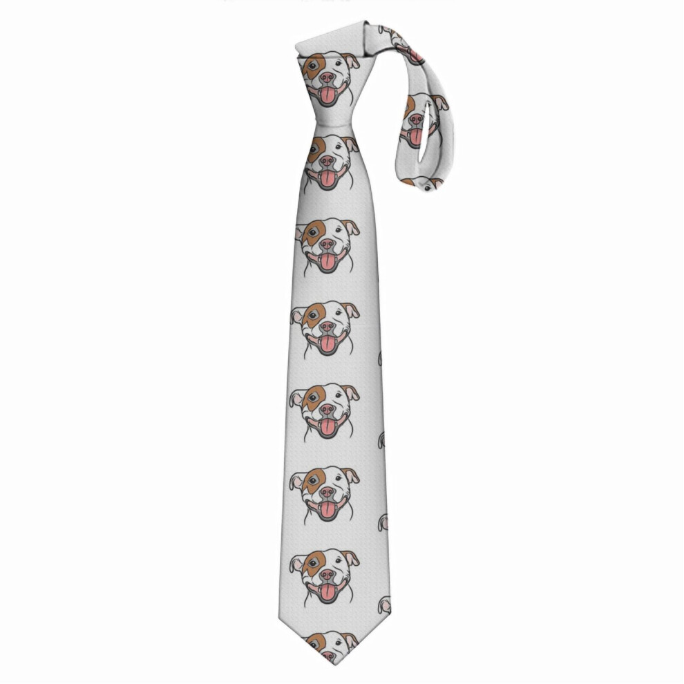 (Grey And White Pit Bull=23082) Men's Tie Printed Skinny Tie Fashion Cool Necktie for Men, Casual Gentleman Novelry Funny Suit Neck Ties