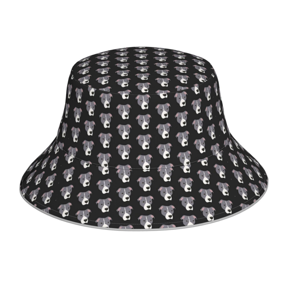 (Grey And White Pit Bull_23082) Bucket Hat Reversible Reflective for Men Women - UV50+ Sun Protection Double-Sided Fishing Hat with 360 Safety Strips