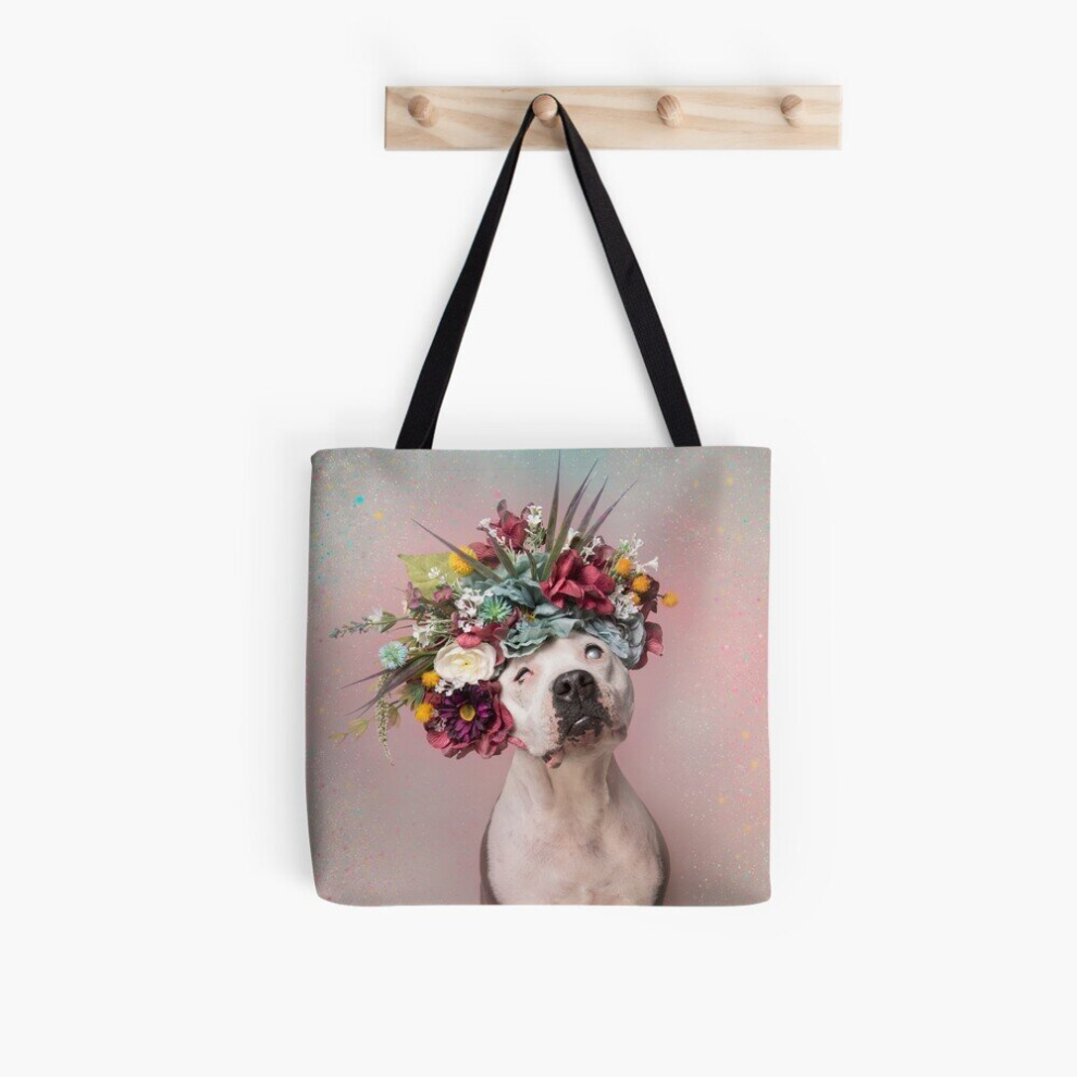 Tote Bags Pit Bull Flower Power, Halo Grocery for School Library Gym