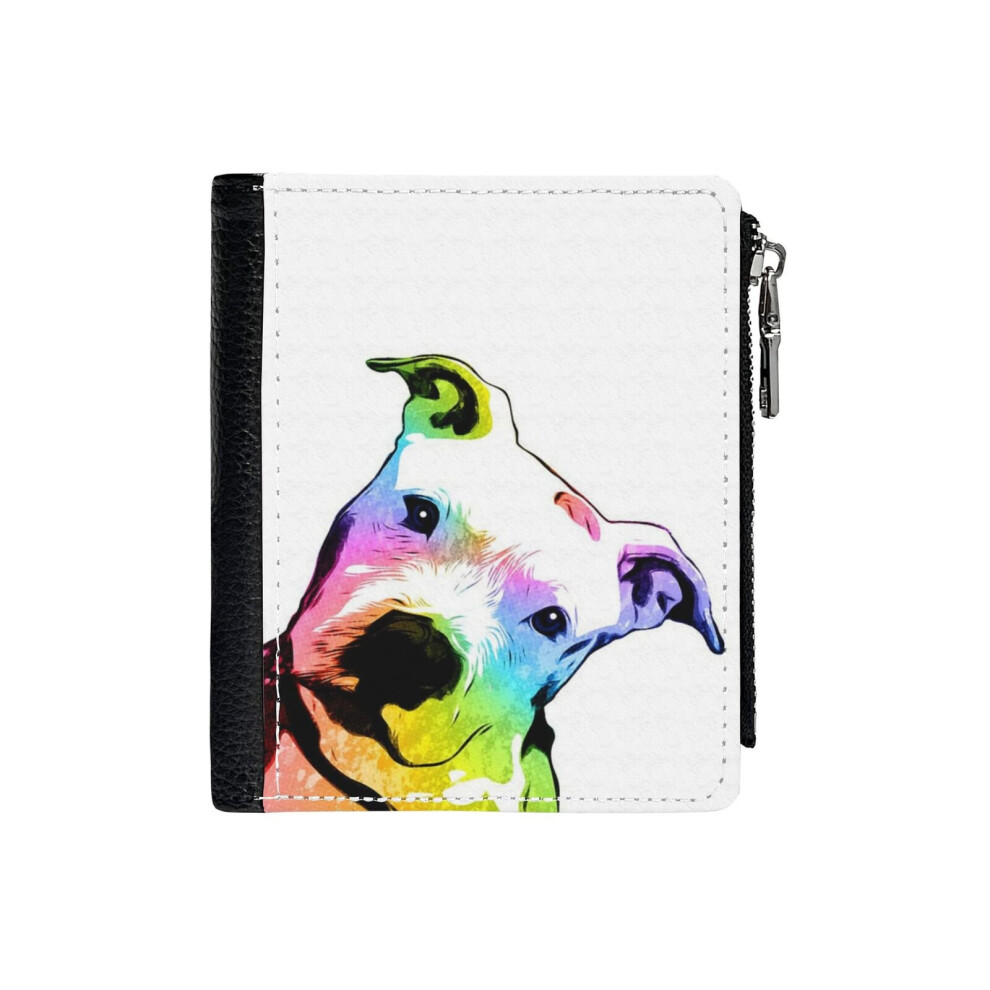 (Pit Bull Rainbow Series Pop Art_42) PU Wallet Compact Bifold with Zipper & Multiple Card Coins Slots Black Stylish Durable Graphic Design Print for M