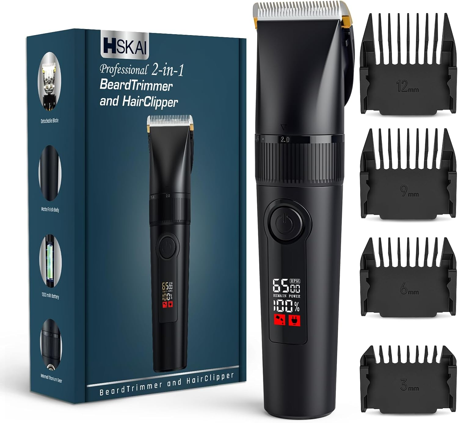 HSKAI 2 in 1 Beard Trimmer and Hair Clipper for Men Detachable Ceramic Titanium